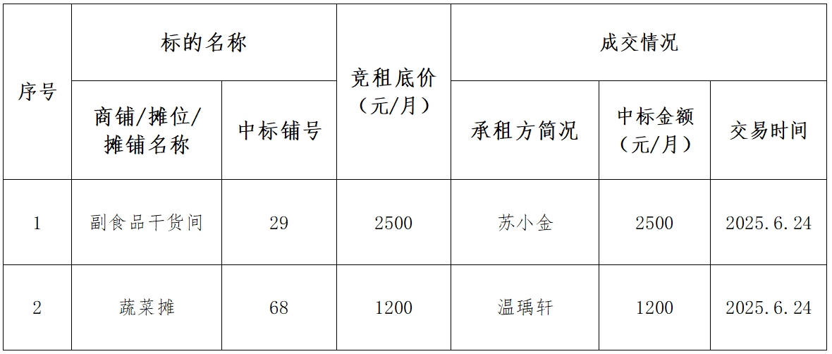 2025年6月24日現場公開競租城發(fā)悅居智慧市集(壹品望郡店)商鋪/攤位/攤鋪成交公示
