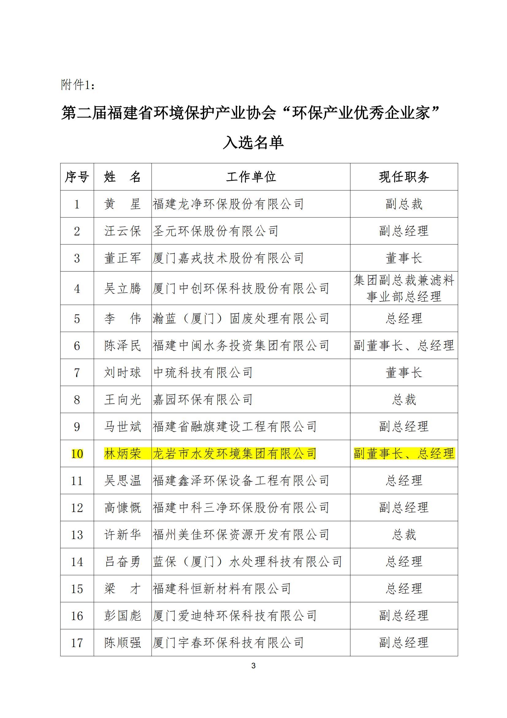 近日,福建省環境保護產業協會印發《關于發布第二屆福建省環境保護產業協會“環保產業優秀企業家”評定及“…